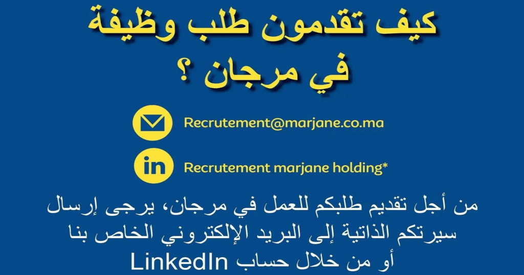 [email protected] هو عنوان البريد الإلكتروني الخاص بطلب العمل في مرجان marjane maroc 2025 والذي يمكنكم من خلاله الحصول على فرص عمل في المغرب 2025 .