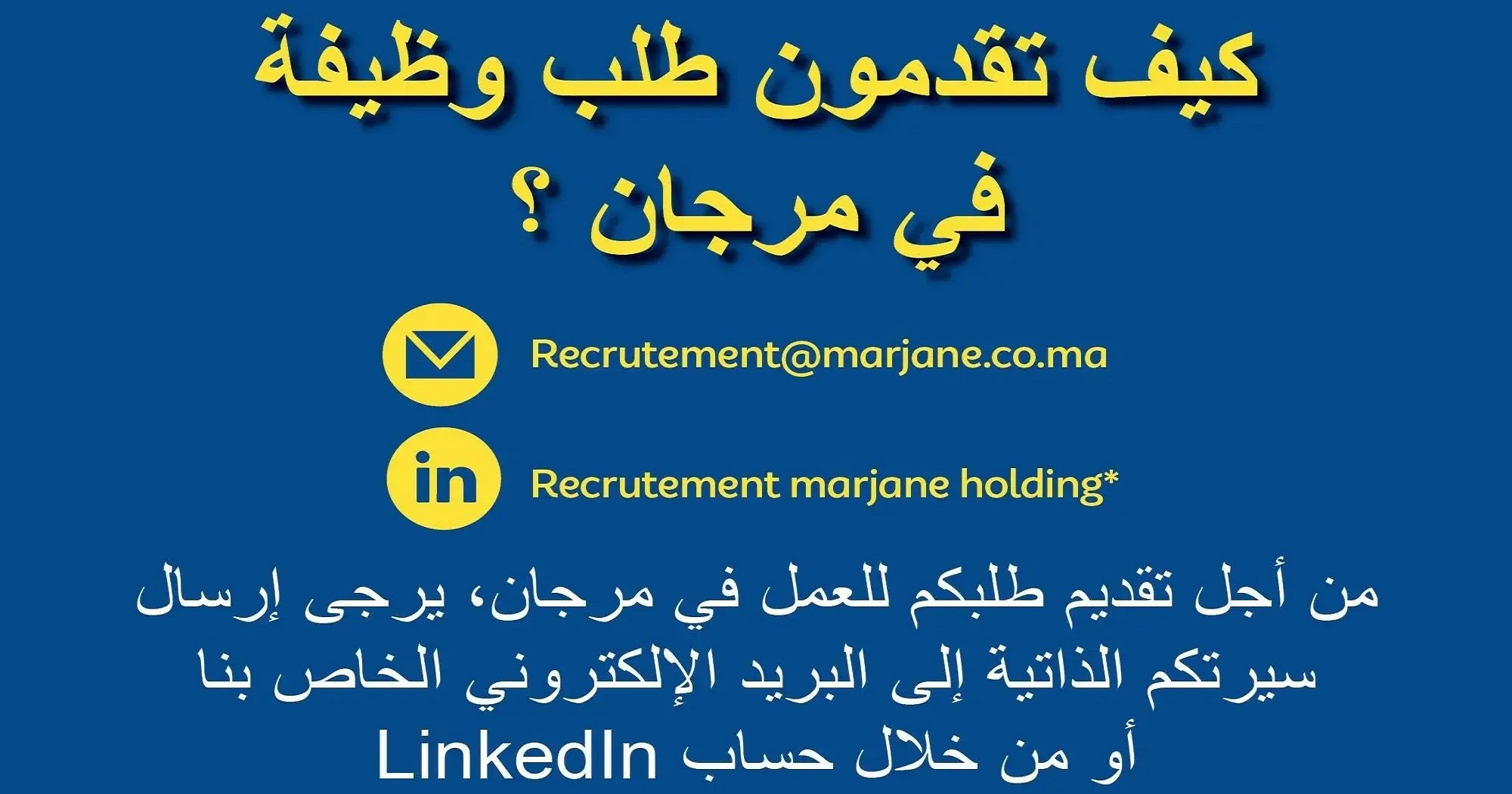 [email protected] هو عنوان البريد الإلكتروني الخاص بطلب العمل في مرجان marjane maroc 2025 والذي يمكنكم من خلاله الحصول على فرص عمل في المغرب 2025 .